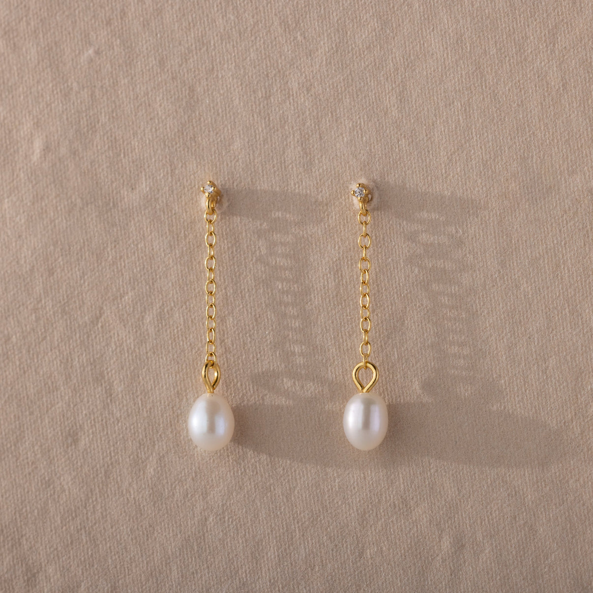 Our Isha Pearl Drop Earrings are delicate and dainty, easy to wear any time of day, anywhere. With the sparkle of the diamond stud earring at the top and the dangling pearl charm, these earrings are a dream to style in your wardrobe.
